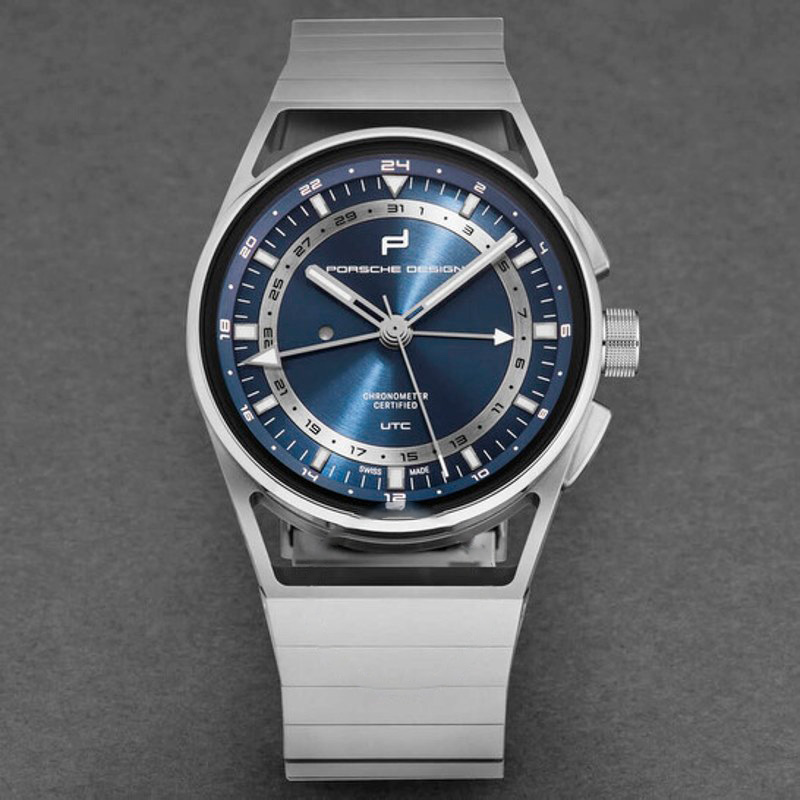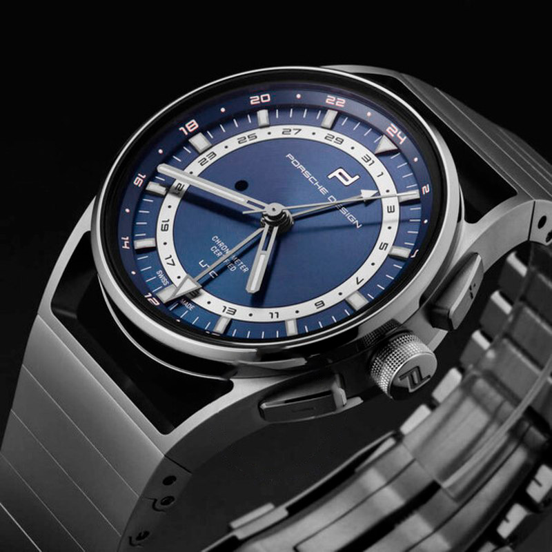 O Porsche Design Globetimer Automático Mostrador Azul 42 mm Traz uma leitura arquitetônica do tempo com superfícies bem trabalhadas. Caixa em aço inoxidável, titânio, Mostrador azul, 42 mm.