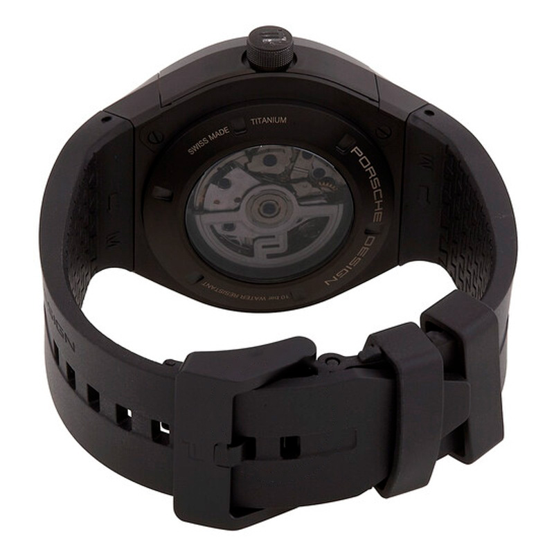 O Porsche Design Atuador Monobloco Mostrador Preto 45 mm Equilibra herança e desenho atual em proporções bem resolvidas. Caixa em titânio, Mostrador preto, 45 mm.
