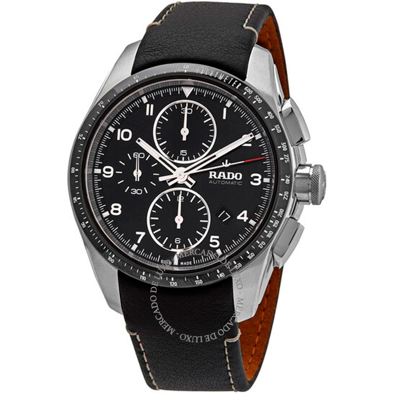 O Rado Cronógrafo HyperChrome Automático Mostrador Preto Equilibra herança e desenho atual em proporções bem resolvidas. Mostrador preto.