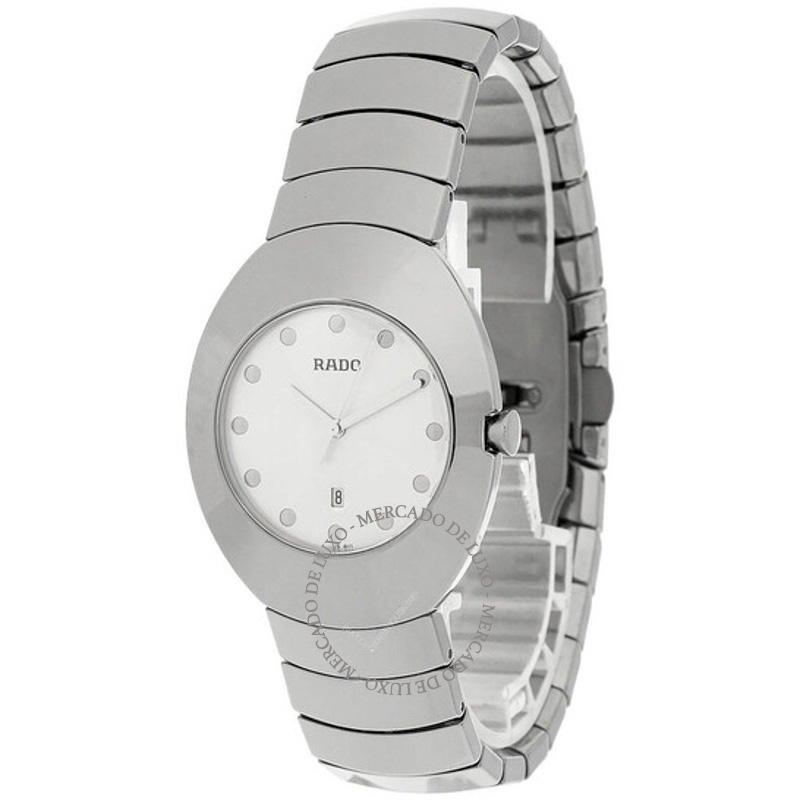 O Rado Ovation Quartz Mostrador Prata Traz uma leitura arquitetônica do tempo com superfícies bem trabalhadas.