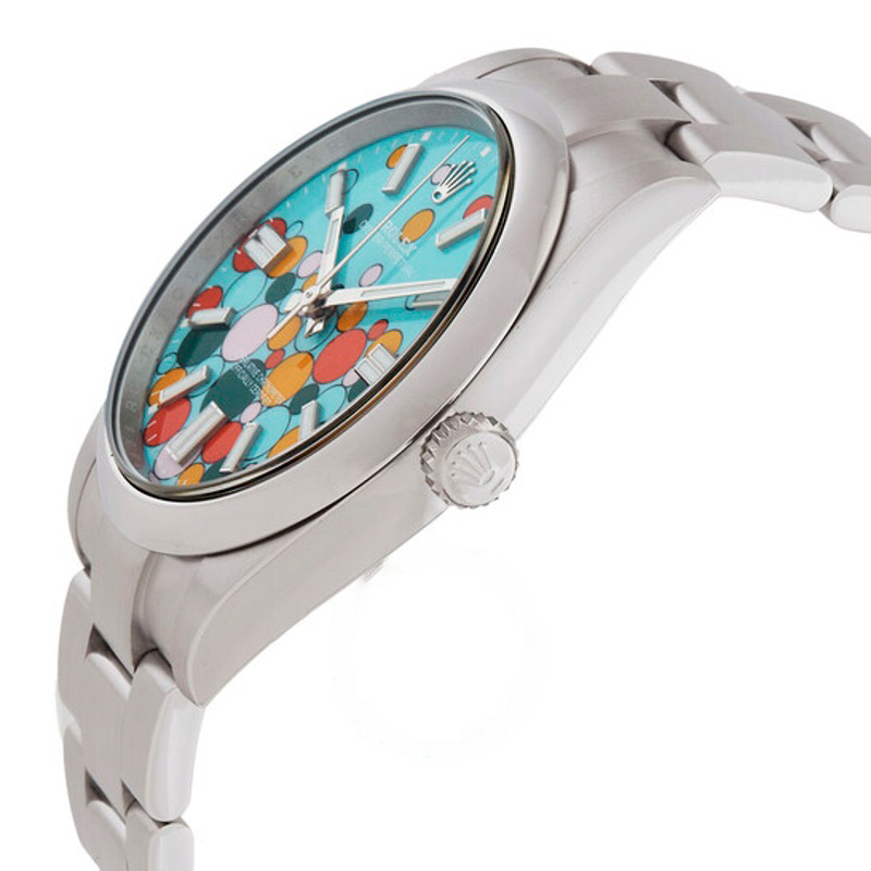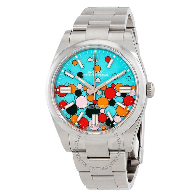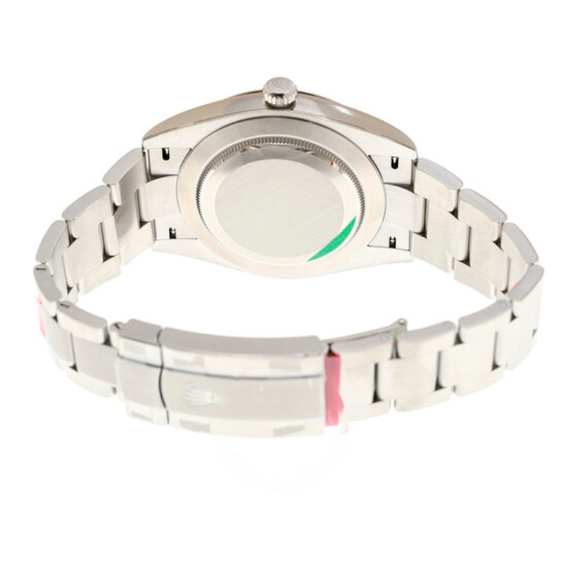 No interior, a mecânica suíça assegura pontualidade e robustez no cotidiano. O movimento automático garante marcha estável e conveniência, preservando o requinte do conjunto. A pulseira Oyster reforça o conforto e a assinatura estética da manufatura.