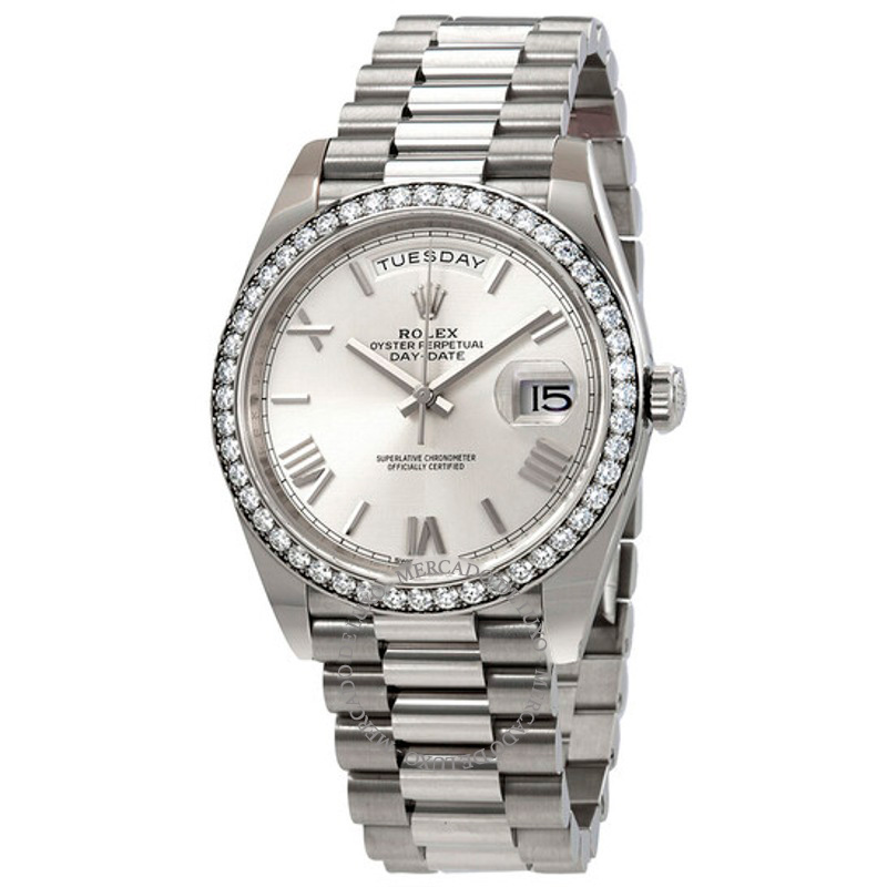 O Rolex Day-Date Automático Mostrador Prateado traduz a linguagem da alta relojoaria com proporções equilibradas e acabamento impecável. Com mostrador prateado, entrega presença sofisticada e brilho discreto. Uma criação pensada para atravessar décadas sem perder relevância.
