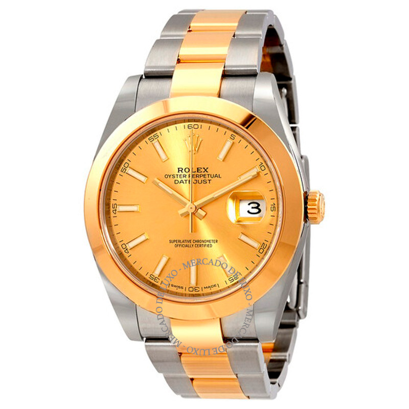 O Rolex Datejust 41 Mostrador Champagne 41 mm traduz a linguagem da alta relojoaria com proporções equilibradas e acabamento impecável. Com mostrador champagne, tamanho 41 mm, entrega presença sofisticada e brilho discreto. Uma criação pensada para atravessar décadas sem perder relevância.