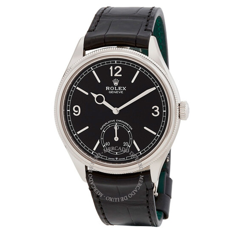 O Rolex Mostrador preto automático de 1908 traduz a linguagem da alta relojoaria com proporções equilibradas e acabamento impecável. Com mostrador preto, entrega presença sofisticada e brilho discreto. Uma criação pensada para atravessar décadas sem perder relevância.