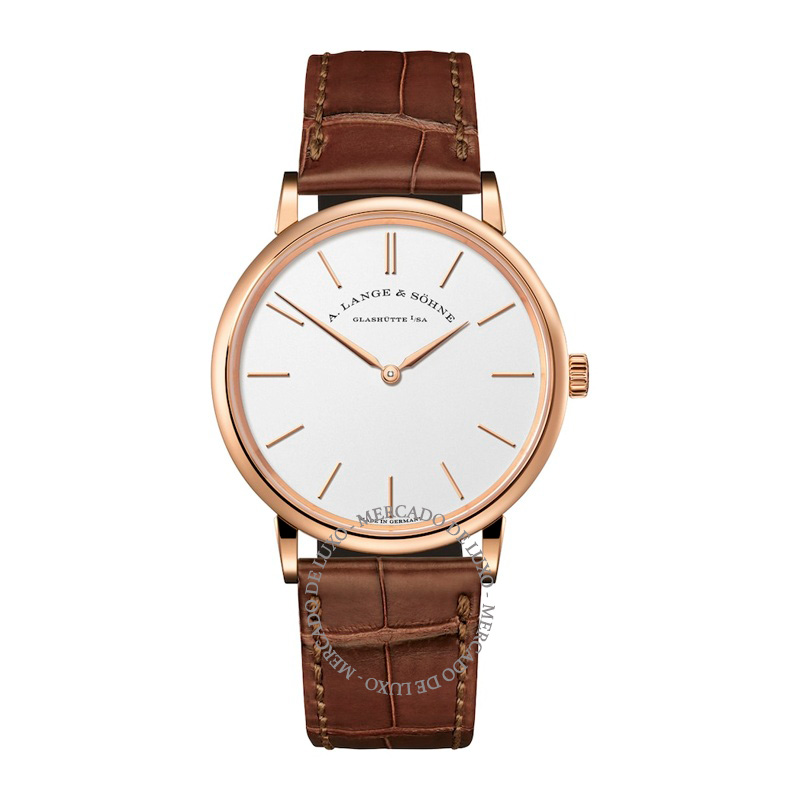 O Saxonia Thin em Ouro Rosé da A. Lange & Söhne é uma ode à pureza do design, com sua caixa em ouro rosa 18k de 37 mm exalando uma elegância minimalista. O mostrador prateado, com marcadores de índices dourados e ponteiros azulados, reflete a estética clássica da marca, inspirada na tradição relojoeira de Glashütte. Este relógio é ideal para quem busca sofisticação discreta, perfeita para ocasiões formais ou casuais de alto nível.