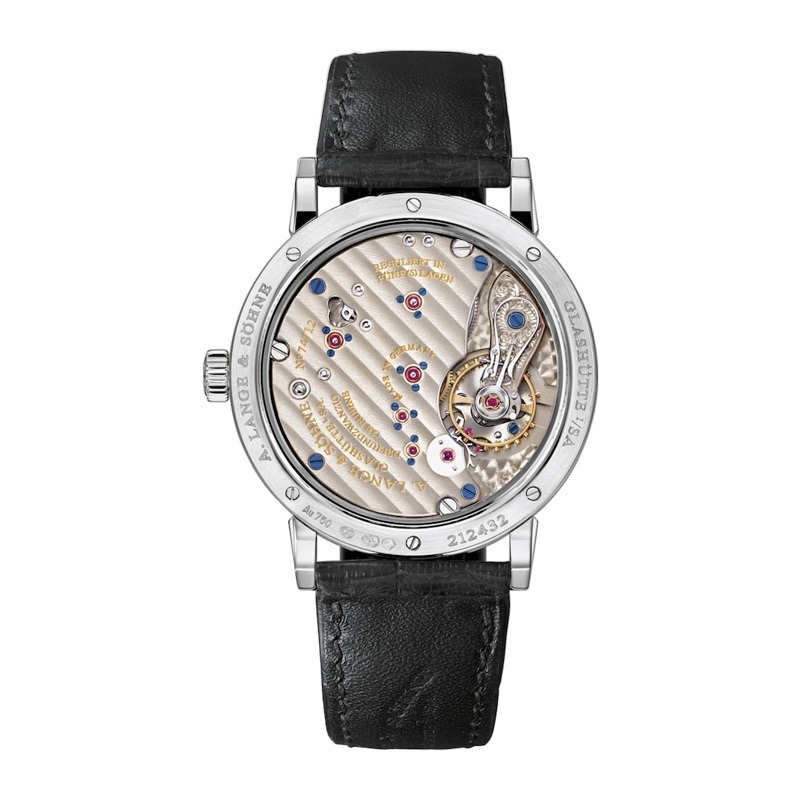 No coração da peça, o calibre L051.1 de corda manual, com 23 joias e uma reserva de marcha de 55 horas, reflete a precisão artesanal da manufatura. O fundo transparente exibe a placa de três quartos com chatons de ouro polido e gravações manuais, um detalhe que encanta os colecionadores. A pulseira em couro de jacaré preto complementa a estética, oferecendo um equilíbrio perfeito entre conforto e requinte.