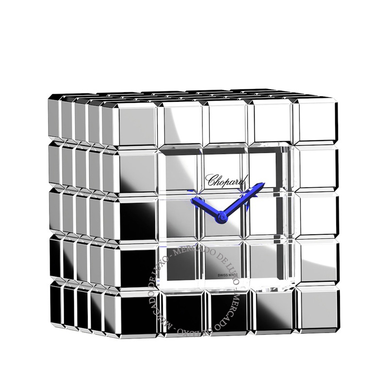 O Chopard de Mesa Ice Cube Mistura precisão geométrica e brilho contido em um gesto refinado. Caixa em aço inoxidável.